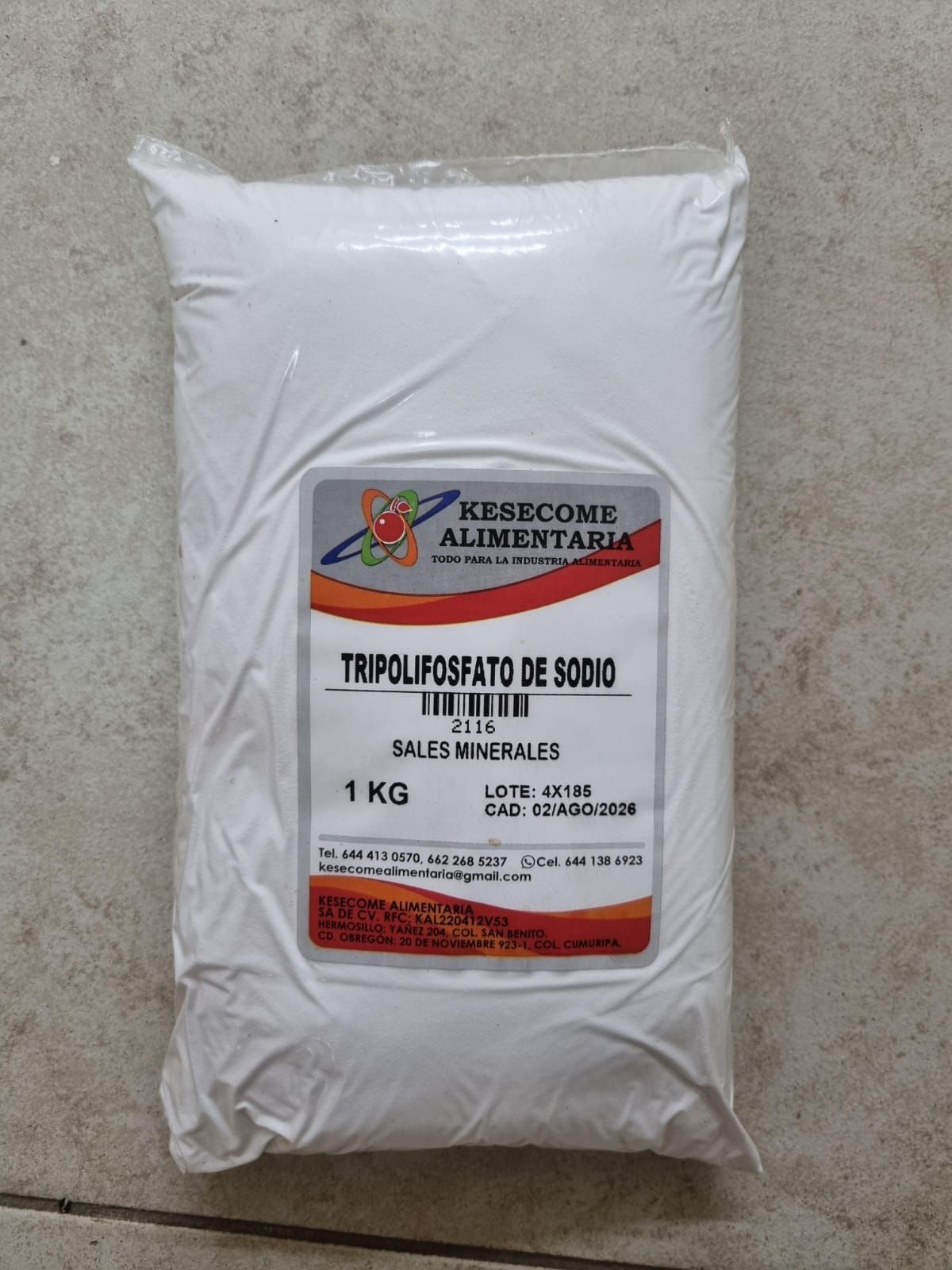 Potente agente secuestrante y estabilizante. El Tripolifosfato de Sodio es ampliamente utilizado en la industria alimentaria para retener humedad, mejorar la textura y evitar la pérdida de líquidos en productos cárnicos, mariscos y embutidos. También ayuda a evitar la cristalización en productos lácteos y mejora la solubilidad de las proteínas.